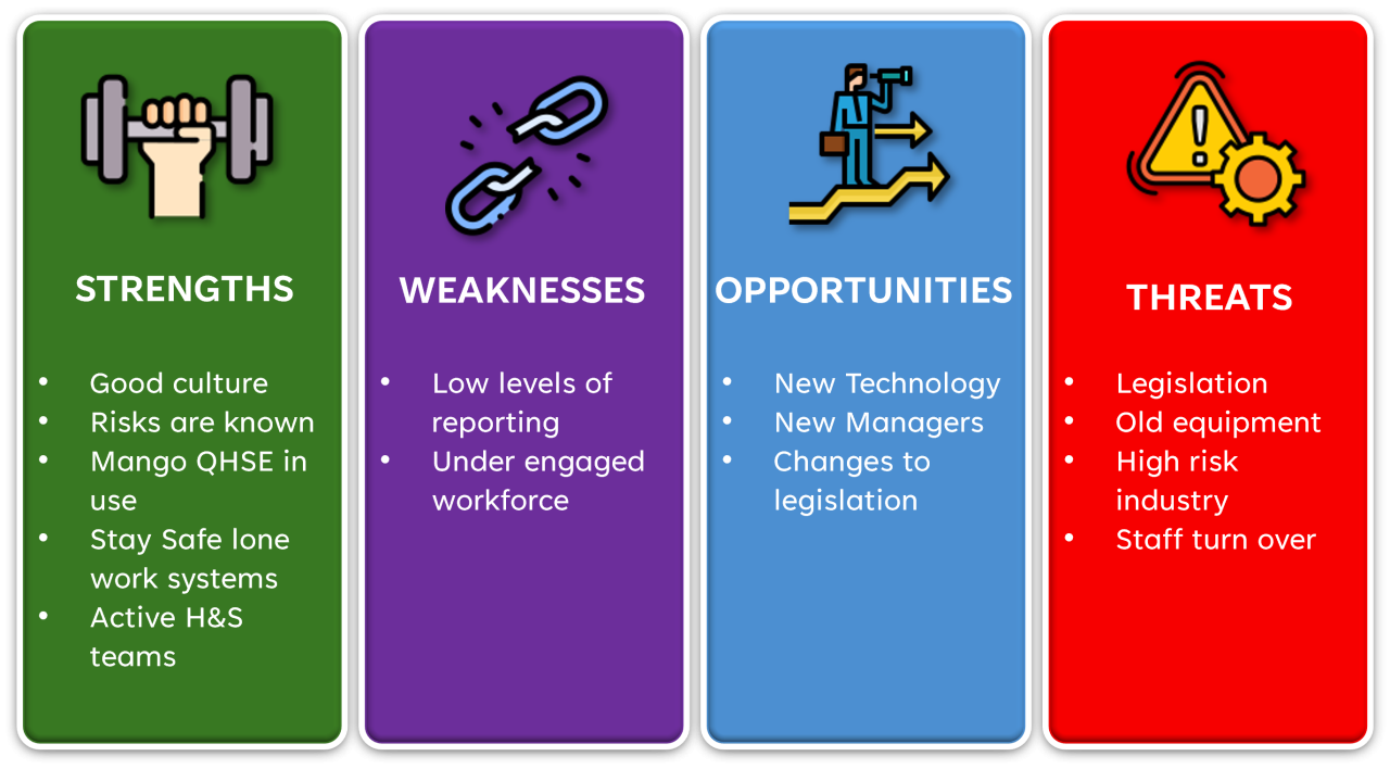 As an organisation, you need to understand what issues / risks could impact your business & OHSMS both from inside the organisation and external to the organisation in both a positive and a negative way. By understanding, I mean you need to be able to know about them, understand them, explain them, assess them in terms of what the impact is and how big it is, ideally figure out a way of mitigating or preventing any risks impacting the OHSMS, your people, those interested parties in your business (and of course your business). The aim effectively is if you understand what the issues are you can then manage them.