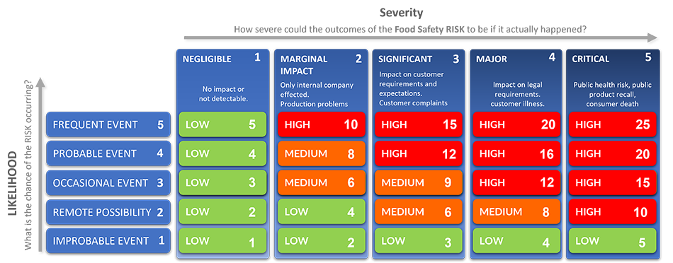 Change the detail within the severity/consequence to match the outcomes expected for either VACCP or TACCP, and you're ready to go.