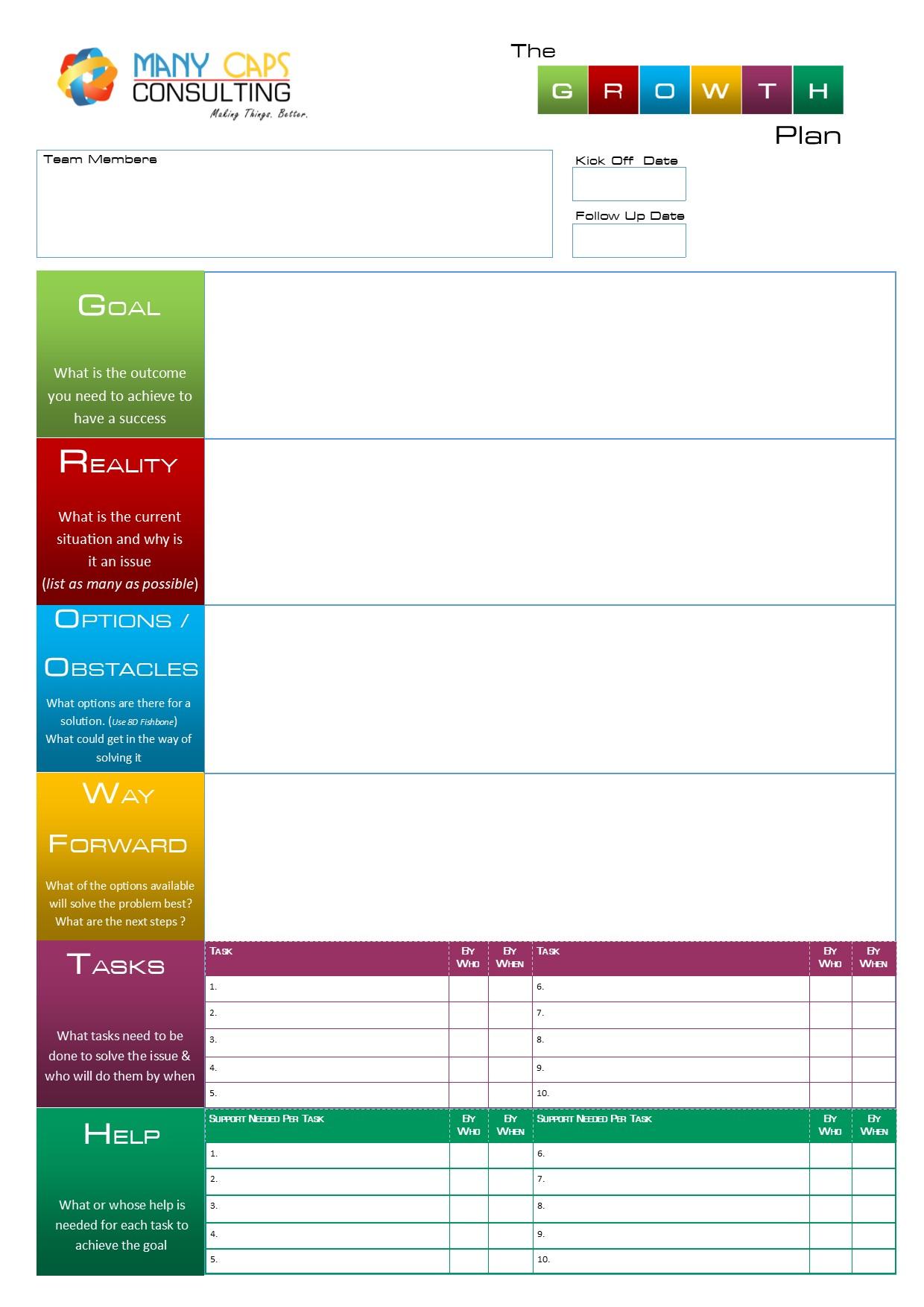 The idea of the Growth Plan is to allow someone to be the coach of the group and support them on getting to the cause of the problem using as simple a methodology as possible.