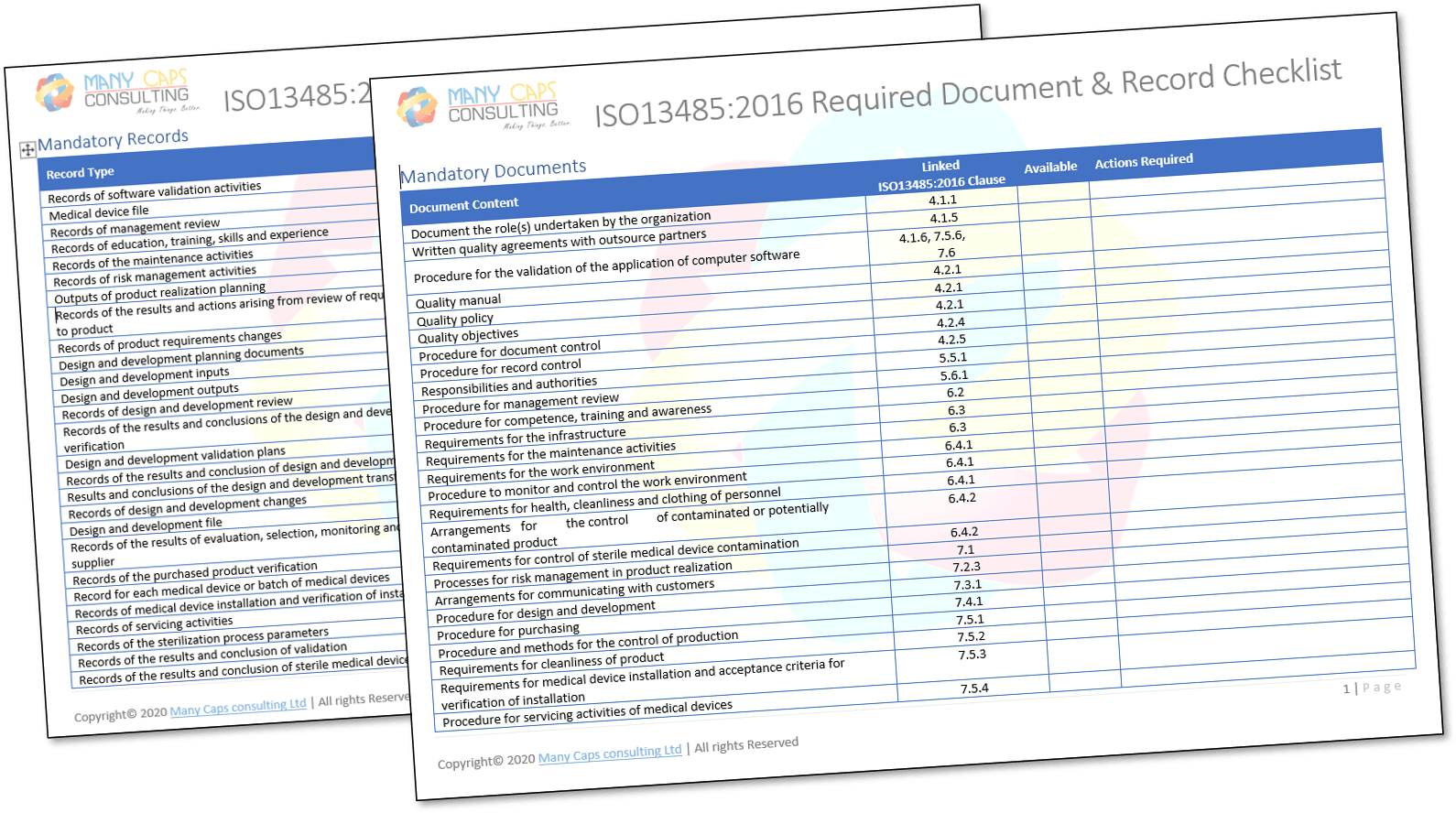 Use this ISO13485 Check-list to ensure you have all of the required documents and records to meet ISO13485 for Medical Device Quality Management Systems
